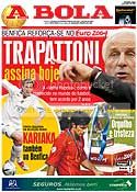 A Bola, na sua edição de hoje, dia seguinte à final do Campeonato Europeu de Futebol, realizado em Portugal, país que se sagrou vice-Campeão Europeu, o melhor que já conseguiu ao longo da sua história futebolística, dedica 3/4 da sua capa ao que realmente é importante: Trapatoni, como novo treinador do Benfica, e Kariaki, novo reforço do mesmo clube.