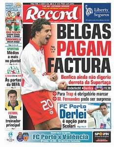 Hoje, somos brindados com oito páginas consagradas ao "cassetegate". Blá, blá, blá, tracinhos azuis no lugar do que está judicialmente impedido de publicar e a única coisa de interesse é a denúncia da falta de coerência de João Marcelino, director do Correio da Manhã, face à divulgação de informações obtidas em off, recordando o caso da revelação das declarações de António Oliveira, pelo jornal Record, que o mesmo, à altura, dirigia.