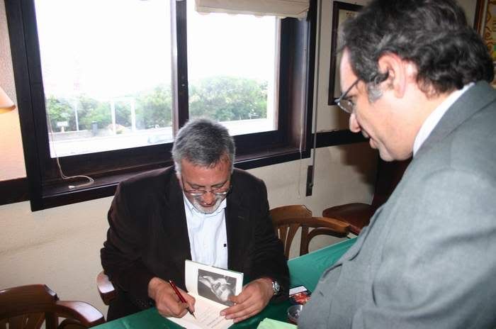 O autor tem um certo carinho por Vila do Conde, a quem chama "A Bela". Isto porque, segundo nos contou noutra altura, quando era miúdo passava cá umas quinzenas durante o Verão. Aliás, o Francisco diz que ainda tem bem presente o aroma de manhãs de mar em Vila do Conde. Por isso, fez-nos esta belíssima dedicatória, repetindo-a no exemplar que adquiri para o Dupond, que ultimamente anda carregado de trabalho e tem andado um pouco ausente da blogosfera.